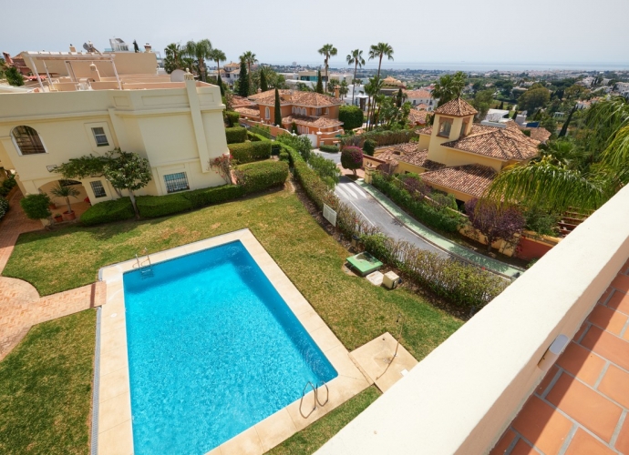 Adosada, La Quinta, Costa del Sol. 3 Dormitorios, 2 Baños, Construidos 180 m², Terraza 55 m². Posición : Cerca de Golf, Cerca de Tiendas, Cerca de Cuidad, Urbanización. Orientación : Sur. Estado : Excelente. Piscina : Comunitaria. Climatización : A/A Caliente, A/A Frio, Bañon con S/R. Vistas : Mar, Montaña, Jardín. Caracteristicas : Terraza Cubierta, Armarios Empotrados, Terraza Privada, Solario, Trastero, Suelos de Mármol, Barbacoa, Acristalamiento Dobles. Muebles : Sin Amueblar. Cocina : Equipada. Jardin : Privado. Seguridad : Recinto Cerrado. Aparcamiento : Cubierto. Categoría : Reventa.